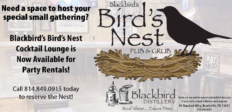 Blackbird Distillery is located at 93 Blackout Alley, Brookville, PA. Step back in time at Blackbird Distillery, Pennsylvania’s number 1 moonshine distillery, and experience old-fashioned moonshine made completely by hand, just like the old-timers did in the woods. Stop in to try a sample and listen to the staff talk about the history of moonshine and the whiskey rebellion.
